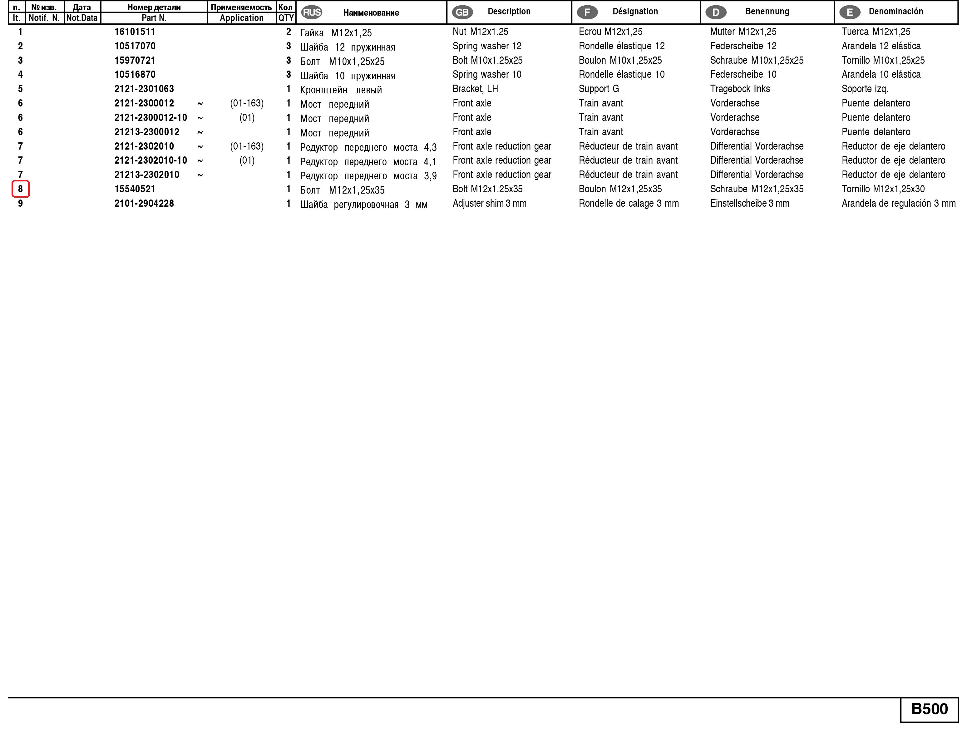 Болт М12х1.25х35мм преден мост 21210