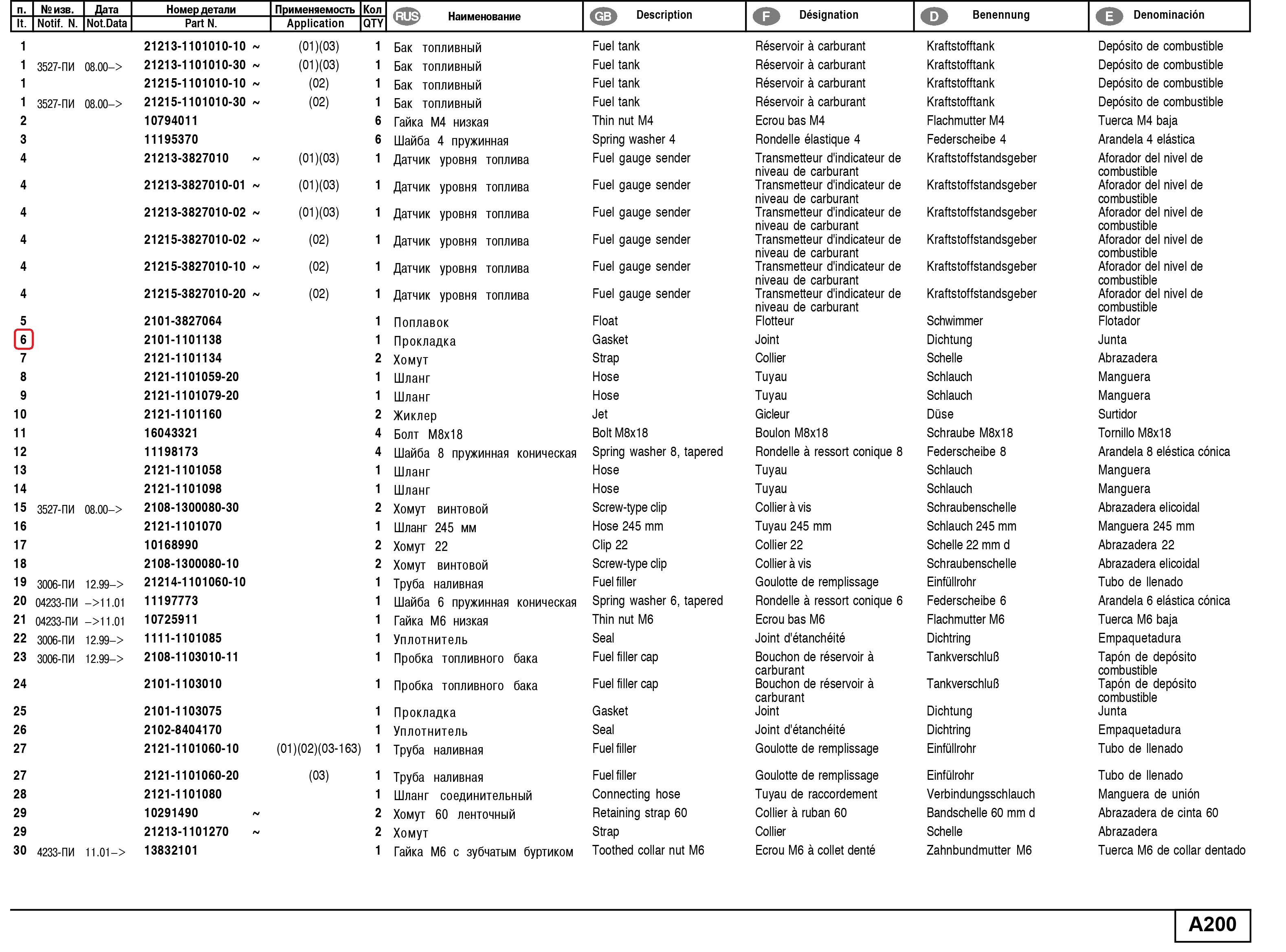 Gasket fuel pump