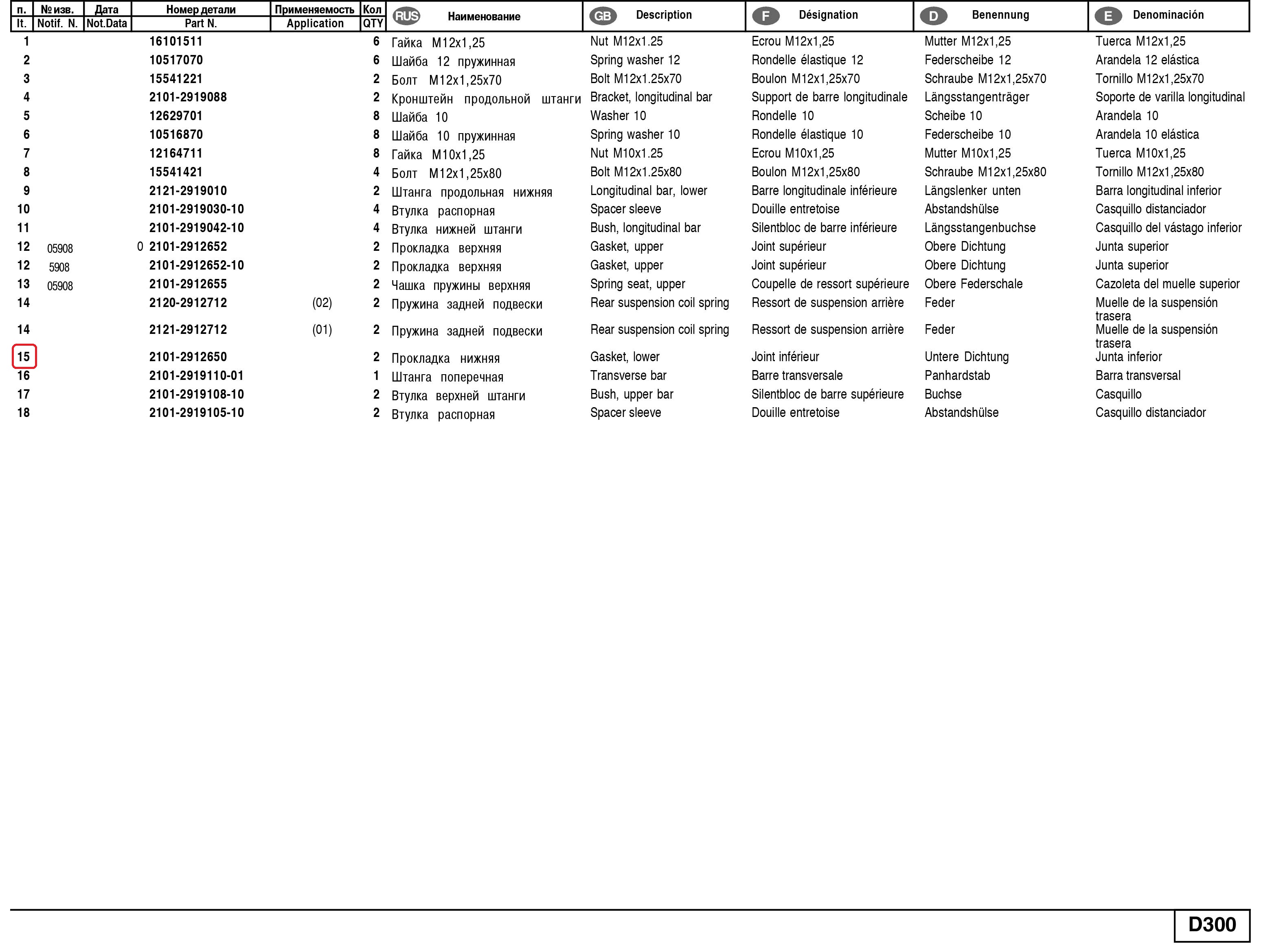 Garnitură arc elicoidal spate